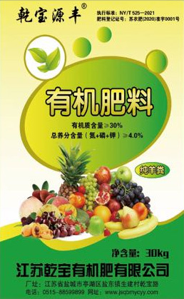 “乾寶源豐”有機肥,以羊糞為主要原料,菌菇渣、秸稈為輔料,經高溫發酵加工而成,獲得《江蘇省肥料登記證》和國家農業農村部生物有機肥、復合微生物肥料登記證。是水果、蔬菜、花卉及有機農產品、綠色食品理想的肥料。江蘇乾寶有機肥有限公司被評為“江蘇省十大有機肥標桿企業”。